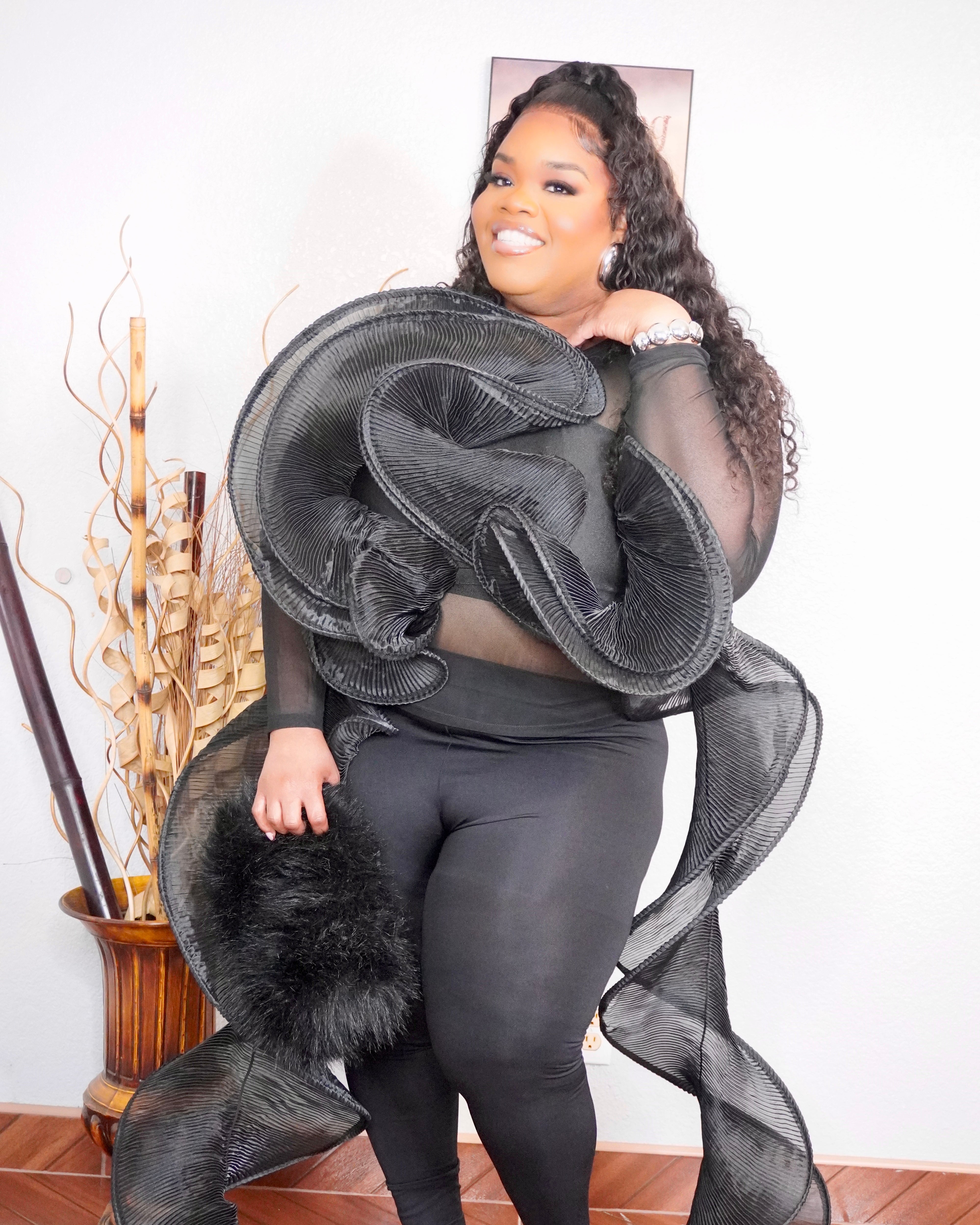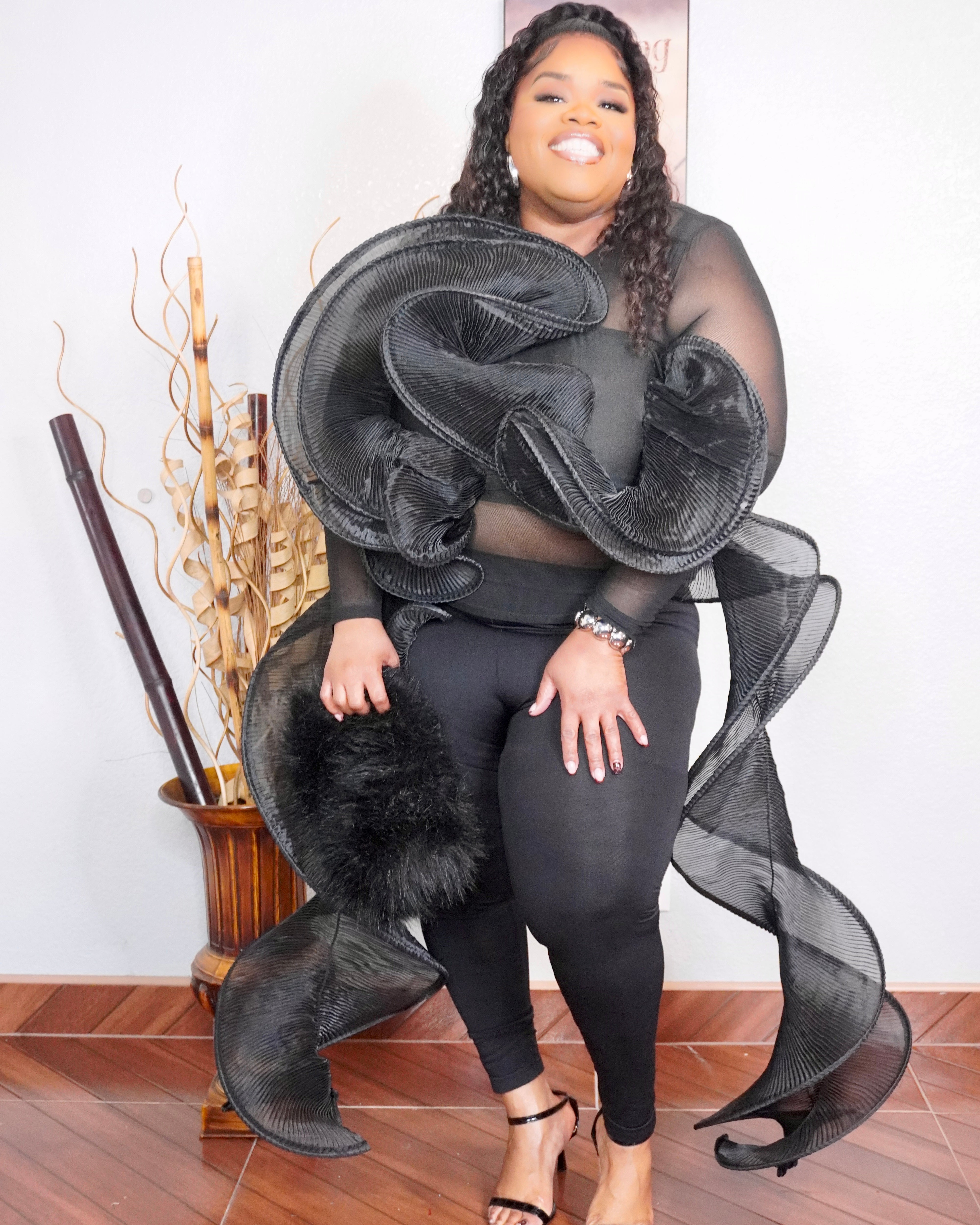 3D Dramatic Top This architectural piece features dimensional layering and bold structural elements that command attention. The 3D construction creates striking visual depth and movement, making it an ideal statement piece for those seeking contemporary sophistication. The dramatic silhouette works beautifully as a standalone focal point or layered with minimalist pieces to amplify its impact. Perfect for elevating everyday styling with avant-garde flair.