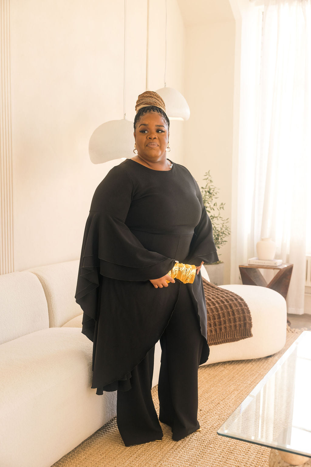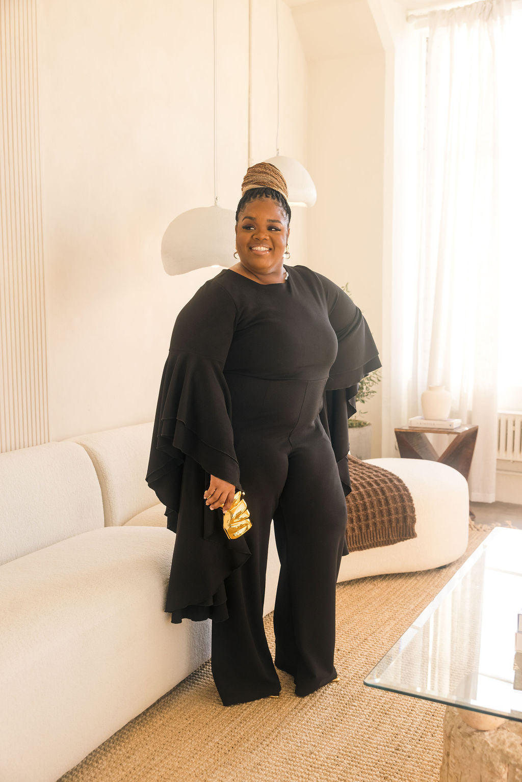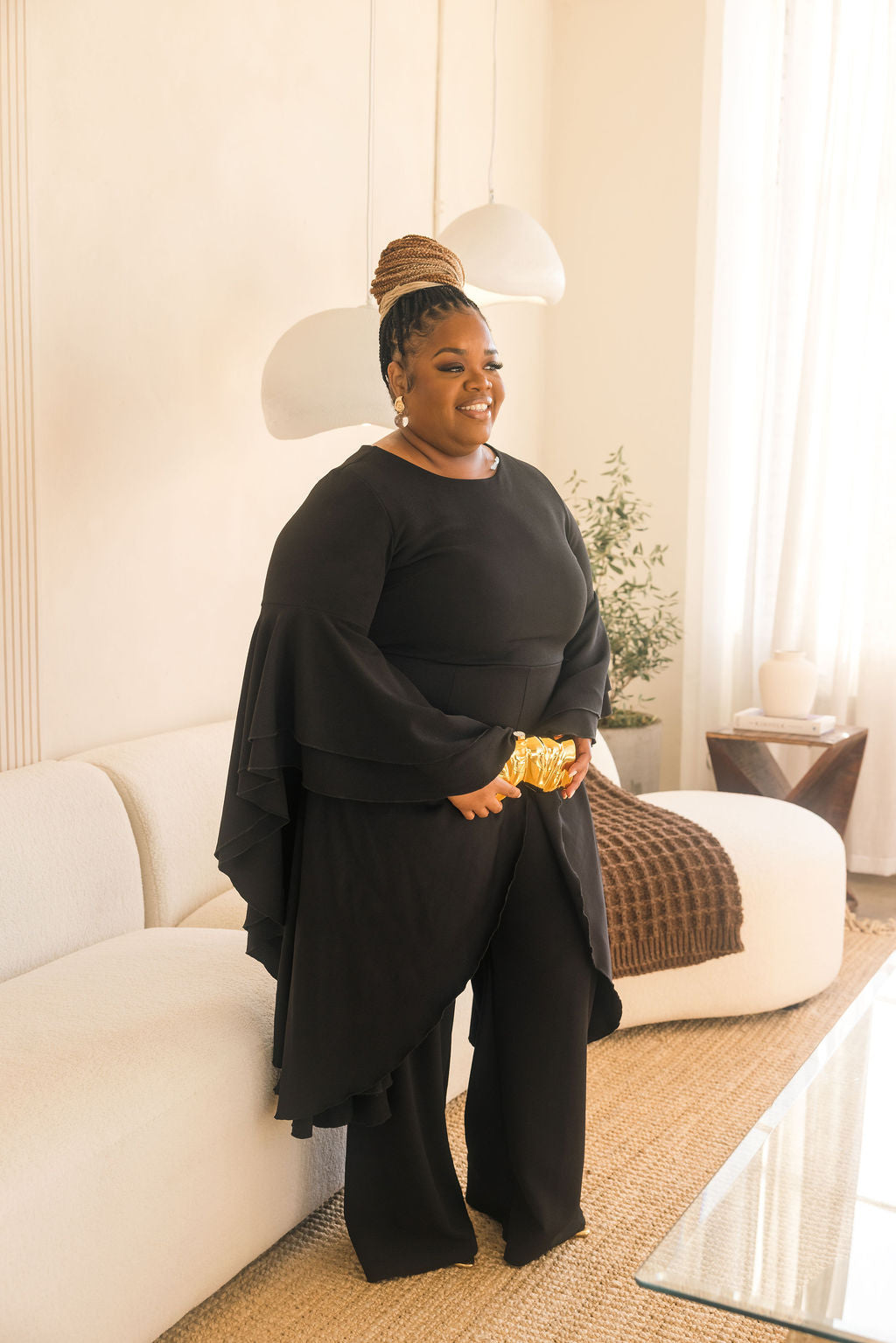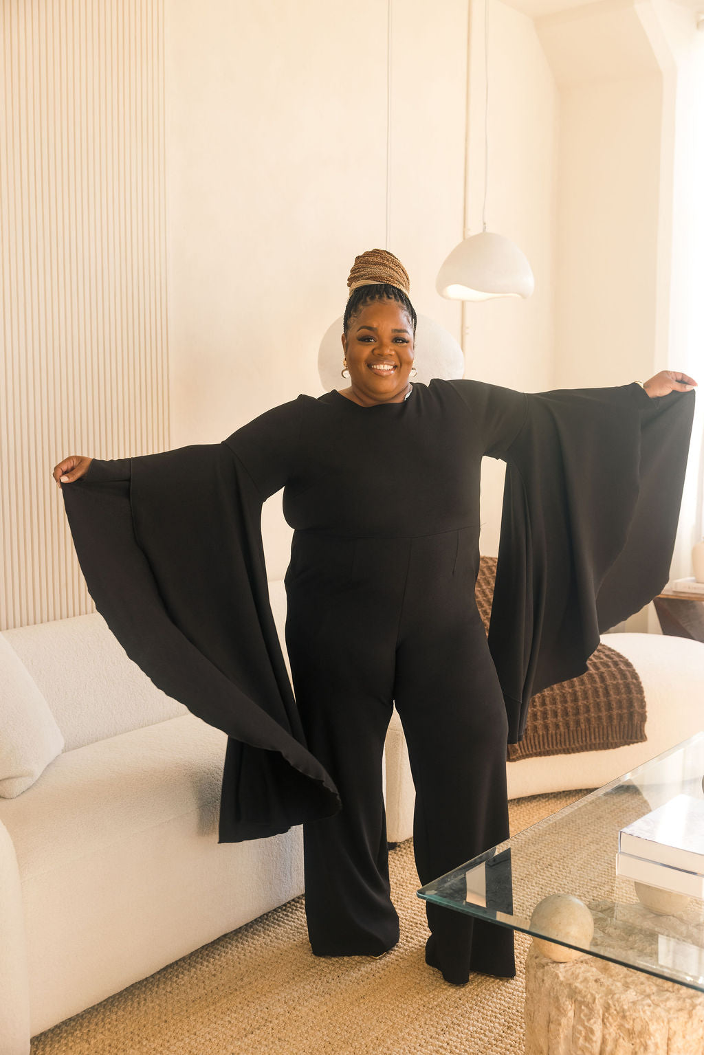 Make a bold statement with this Exaggerated Arm Jumpsuit, designed to command attention with its dramatic, voluminous sleeves. The tapered waist creates a refined silhouette that flatters your natural curves while the oversized arms deliver contemporary edge and movement. Perfect for those who embrace fashion-forward styling, this piece transitions seamlessly from day to evening wear. The structured fit emphasizes your best features while the exaggerated proportions ensure you stand out with confidence and sophistication.