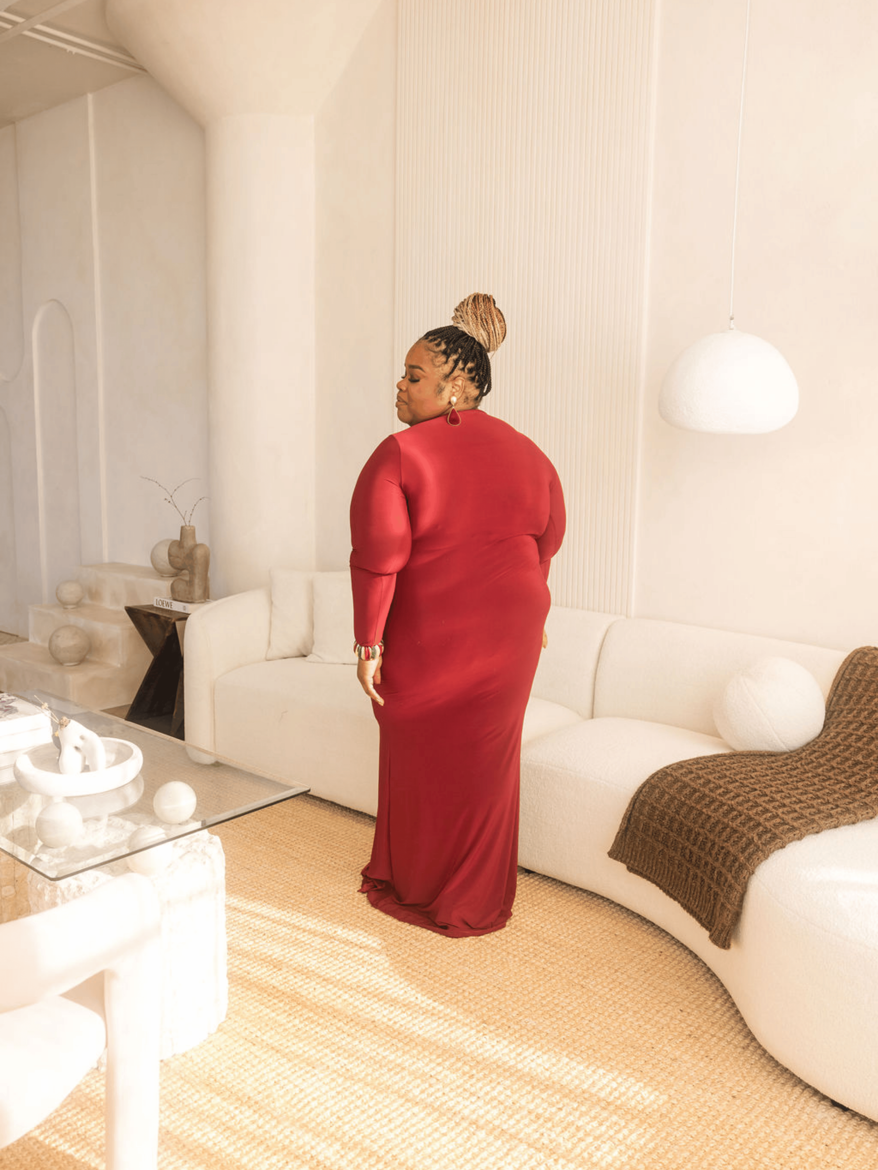 Make a bold impression with this striking maroon layered dress, expertly designed with long sleeves and a sophisticated knotted detail that elevates any occasion. The stretchy fabric moves with you, offering both comfort and a flattering silhouette that adapts to your body. Layered construction adds visual depth and dimension, creating an eye-catching statement piece that transitions seamlessly from day to evening. The rich maroon hue pairs effortlessly with your existing wardrobe while the thoughtful design elements ensure you'll stand out for all the right reasons. Perfect for those who appreciate quality craftsmanship and distinctive style.
