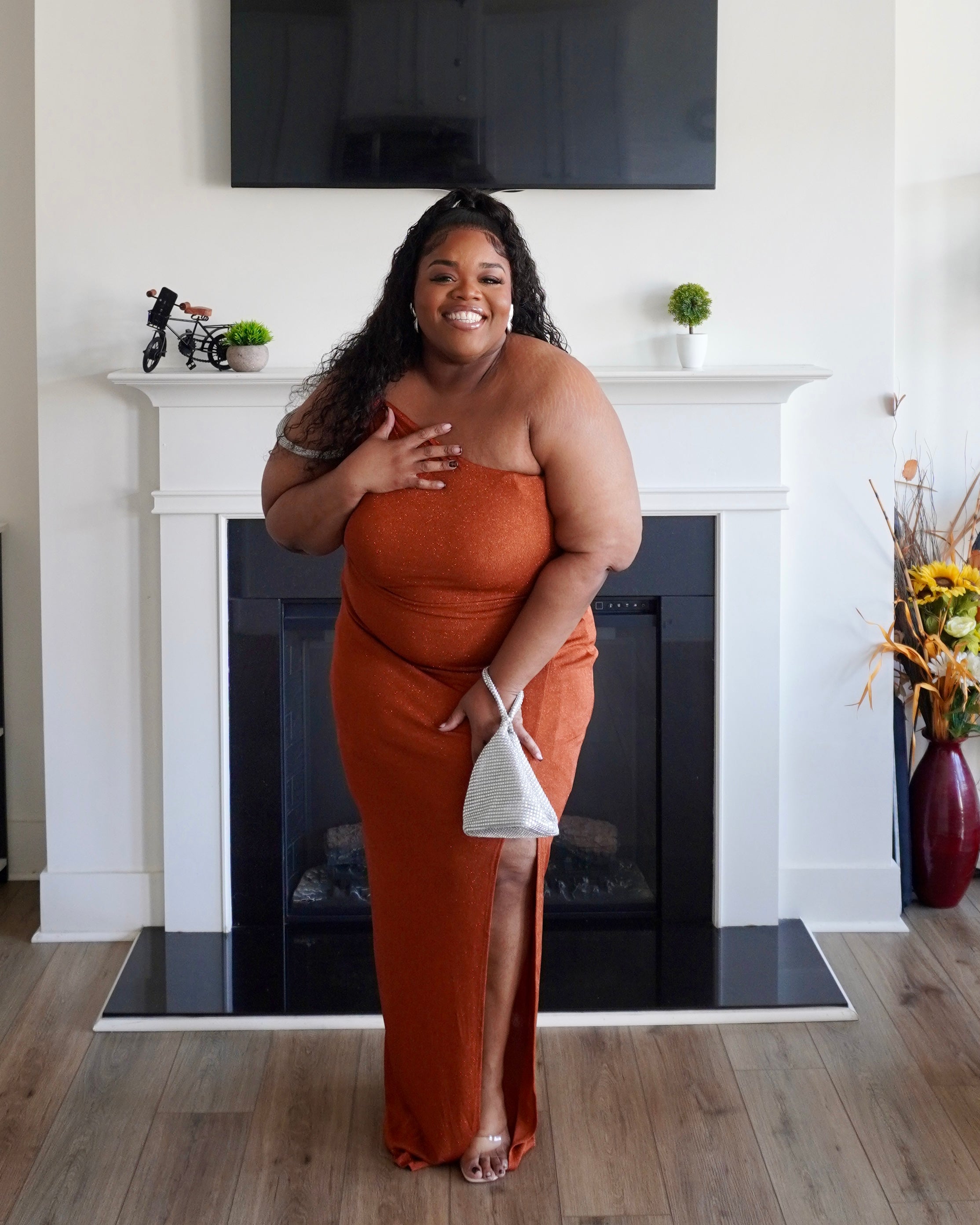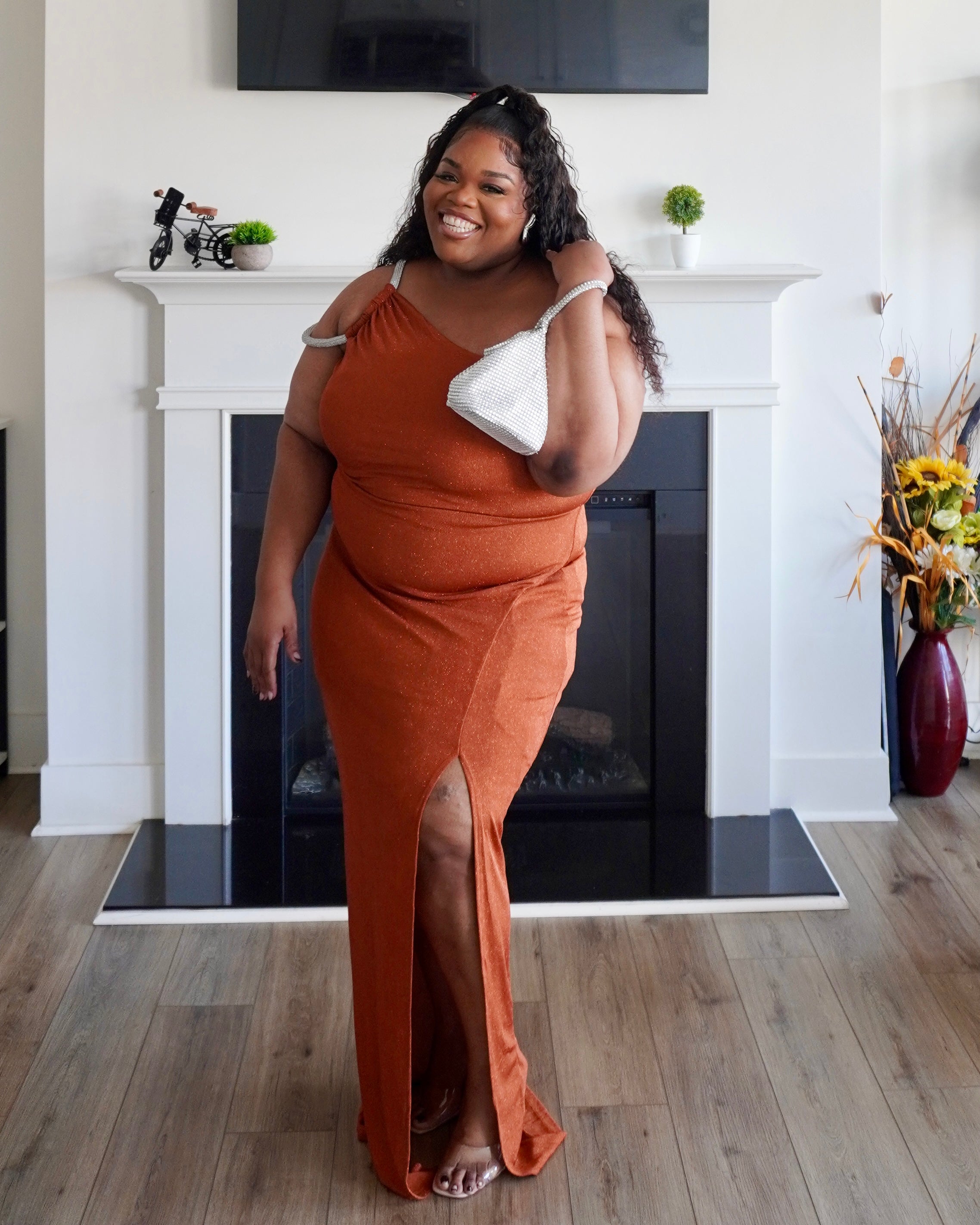 One Shoulder Detail Rust Dress make a sophisticated statement with this striking one-shoulder design in a rich rust hue. The asymmetrical neckline creates an elegant, modern silhouette while the maxi length offers refined coverage. A dramatic side split adds movement and contemporary flair to this versatile piece. Perfect for evening events, upscale dinners, or any occasion where you want to command attention with understated glamour. The rust tone complements a wide range of skin tones and pairs effortlessly with neutral accessories for a polished finish.