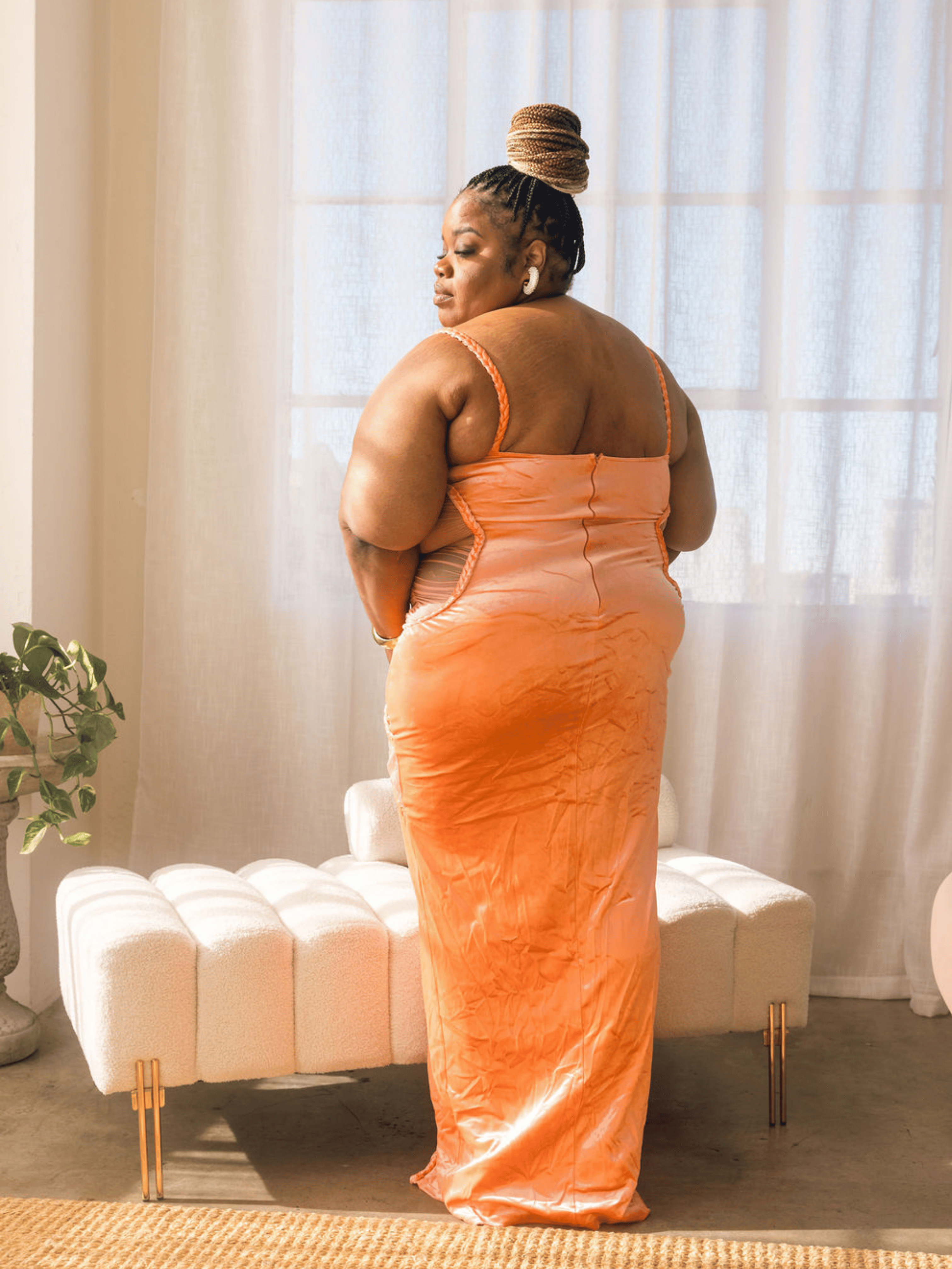 Orange Rope Sheer Panel Dress make a striking statement with this expertly designed orange dress, featuring a sophisticated rope-textured sheer panel that creates visual intrigue. The front split design offers contemporary elegance while maintaining refined appeal. The sheer paneling adds dimension and movement, allowing you to balance coverage with modern style. Perfect for those seeking a dress that commands attention through thoughtful design rather than excess. Ideal for evening events, upscale gatherings, or occasions where you want to showcase fashion-forward sensibility.