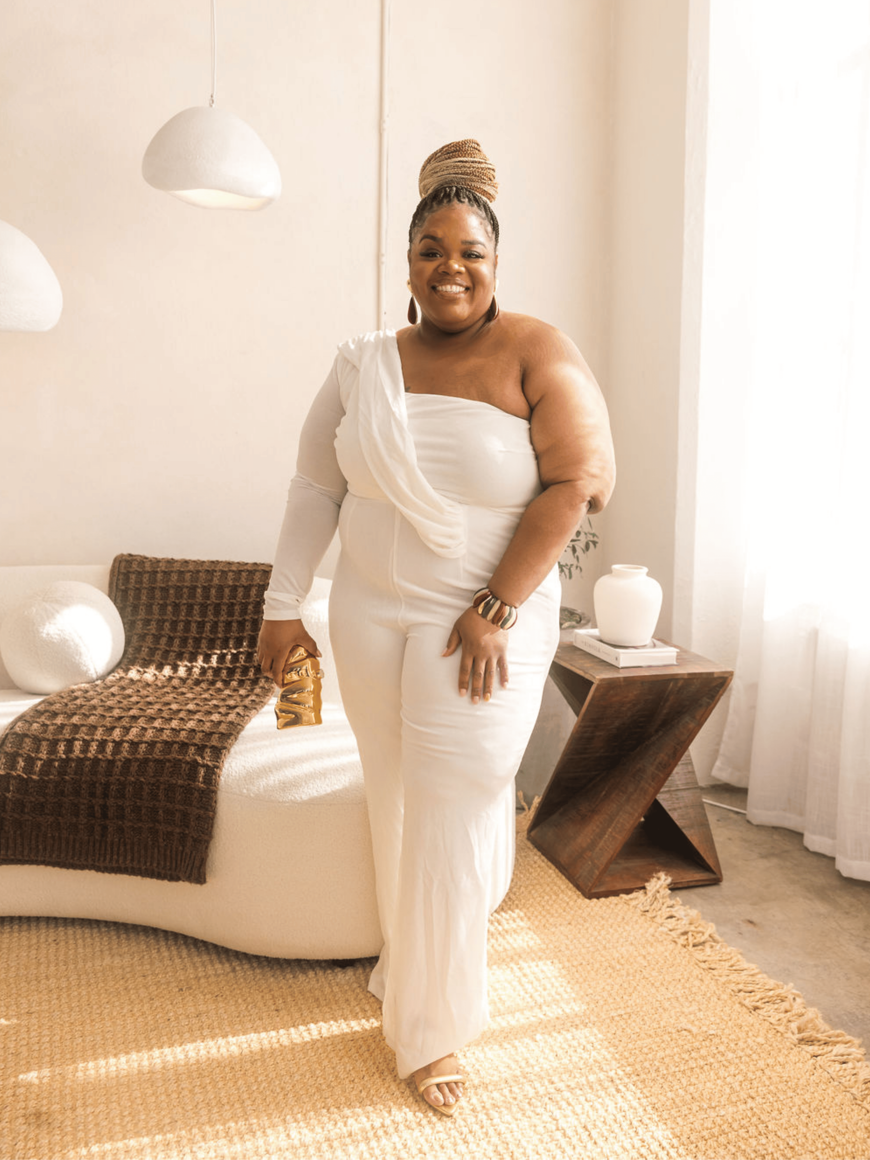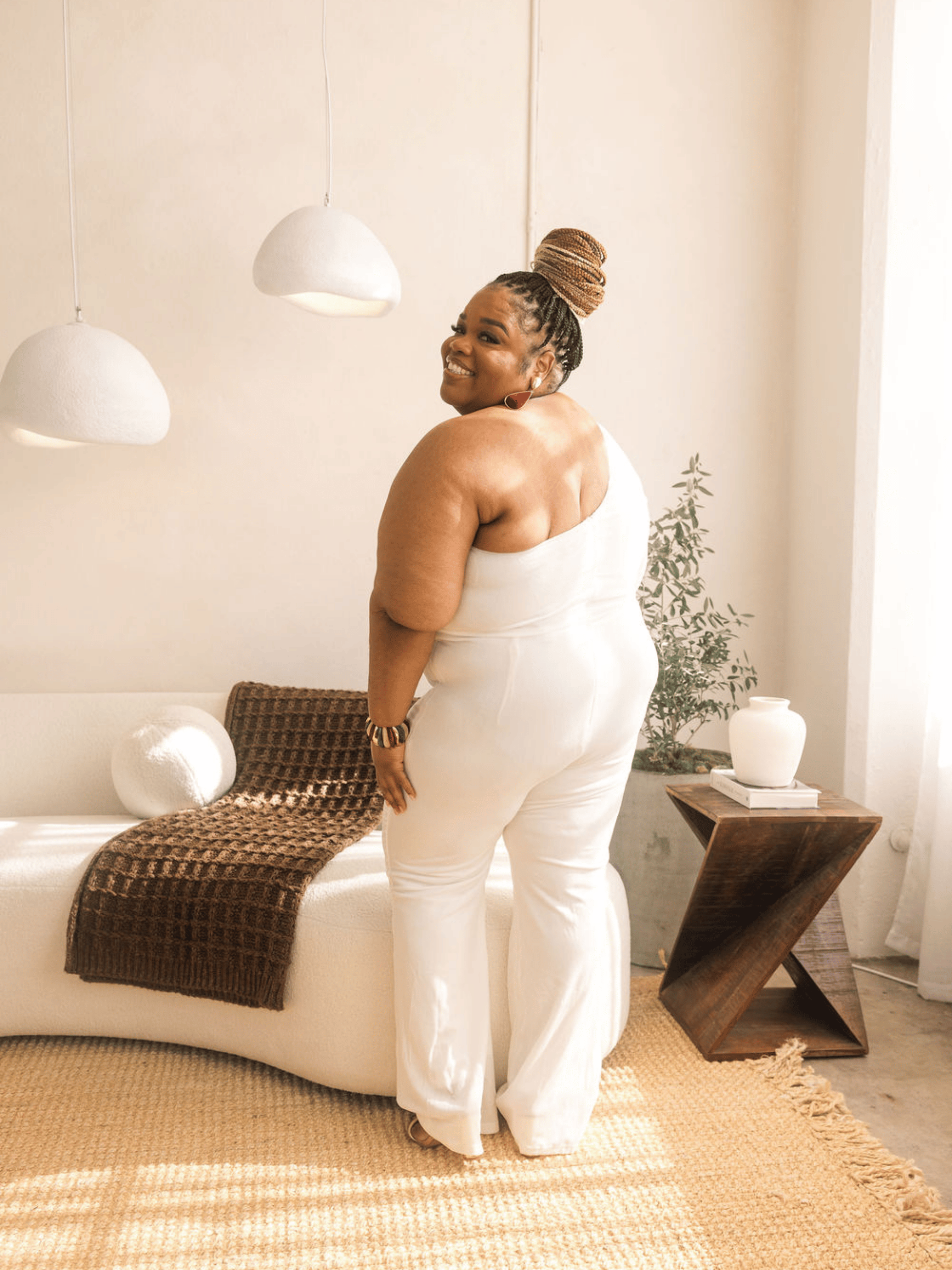 Make a statement in this sophisticated white velvet jumpsuit, designed with an elegant one-shoulder silhouette that commands attention. The luxurious velvet fabric drapes beautifully, creating a fluid, flattering fit that transitions seamlessly from evening events to upscale gatherings. The asymmetrical neckline adds modern edge while maintaining refined elegance. Perfect for those seeking a show-stopping piece that balances contemporary design with timeless sophistication.